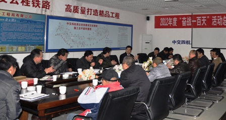 1月7日,四航局云桂鐵路項(xiàng)目召開2012年度“奮戰(zhàn)一百天”活動(dòng)總結(jié)暨先進(jìn)表彰大會(huì)。四航局副總經(jīng)理黃煥謙、副總工程師顧剛,項(xiàng)目各分部及受表彰的先進(jìn)個(gè)人等共40余人參加。
