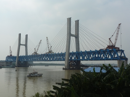 貴廣鐵路北江特大橋、思賢滘特大橋主橋均為563.5米,是我國(guó)高速鐵路建設(shè)史上,在四線鐵路橋梁中第一次采用雙主桁鋼桁梁斜拉橋結(jié)構(gòu),也是貴廣鐵路的關(guān)鍵控制性工程。這兩座橋梁設(shè)計(jì)和制造安裝難度大、創(chuàng)新多,建設(shè)過程中,各參建單位克服了經(jīng)濟(jì)、技術(shù)及橋位處施工環(huán)境等諸多困難,確保了鋼桁梁制造安裝安全、順利進(jìn)行。該節(jié)點(diǎn)的順利完成標(biāo)志著這兩座鋼桁梁斜拉橋的建設(shè)取得了階段性成果。