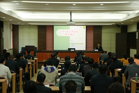 11月29日,四航局舉行學(xué)習(xí)貫徹十八屆三中全會(huì)精神專(zhuān)題報(bào)告會(huì)暨第五次黨委中心組學(xué)習(xí)擴(kuò)大會(huì)議,邀請(qǐng)廣東省社會(huì)科學(xué)院科研處處長(zhǎng)、環(huán)境經(jīng)濟(jì)與政策研究中心主任、南開(kāi)大學(xué)經(jīng)濟(jì)學(xué)博士趙細(xì)康對(duì)三中全會(huì)精神作深入解讀,深入學(xué)習(xí)貫徹黨的十八屆三中全會(huì)精神。董事長(zhǎng)、黨委書(shū)記梁卓仁主持會(huì)議,總經(jīng)理孫國(guó)強(qiáng)等四航局在家的領(lǐng)導(dǎo)班子成員、四航局黨委委員、四航局本部部門(mén)正副職、廣州地區(qū)各單位領(lǐng)導(dǎo)班子成員及其黨群部門(mén)負(fù)責(zé)人、部分黨員代表共計(jì)100人參加會(huì)議。