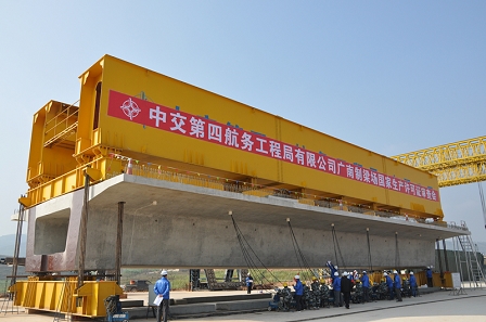12月5日,鐵道部鐵路產(chǎn)品審查部審查組組長吳國琦宣布:中交四航局云桂鐵路廣南制梁場順利通過《時速250公里客運(yùn)專線鐵路后張法預(yù)應(yīng)力混凝土簡支箱梁國家生產(chǎn)許可》的審查。