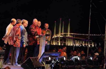 3月1日晚,為慶祝東南亞最長(zhǎng)的大橋馬來西亞檳城第二跨海大橋通車,馬來西亞政府在大橋現(xiàn)場(chǎng)隆重舉行了嘉年華會(huì)和大橋啟用開幕式,過萬(wàn)民眾前來觀禮。馬來西亞首相納吉、前首相巴達(dá)維、檳州首長(zhǎng)林冠英等政要及中國(guó)大使黃惠康出席,中交副總裁孫子宇、中國(guó)港灣黨委書記王家印、四航局董事長(zhǎng)梁卓仁及各參建單位代表應(yīng)邀出席。