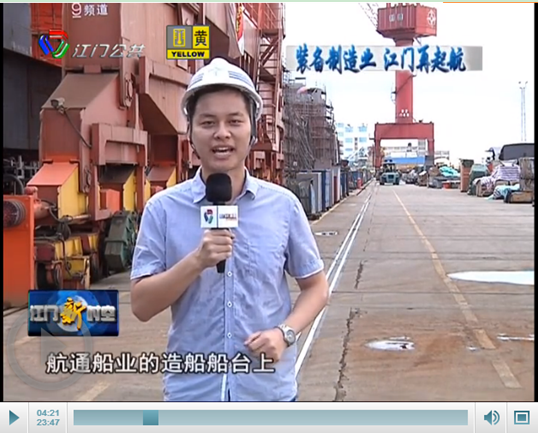 9月3日,江門(mén)電視臺(tái)公共頻道“江門(mén)新時(shí)空”欄目報(bào)道了江門(mén)造船業(yè)發(fā)展現(xiàn)狀和趨勢(shì),四航局航通船業(yè)發(fā)展業(yè)績(jī)?cè)诠?jié)目中受到重點(diǎn)報(bào)道與關(guān)注。