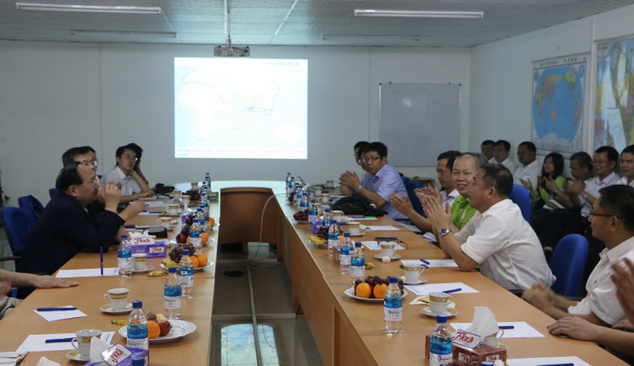 9月17日,中國(guó)進(jìn)出口銀行行長(zhǎng)李若谷、中國(guó)交建總裁陳奮健、四航局董事長(zhǎng)梁卓仁等一行,到中國(guó)港灣總承包、四航局二公司承建的漢班托塔二期工程項(xiàng)目考察指導(dǎo)工作。二公司及其它兄弟單位負(fù)責(zé)人陪同參加。