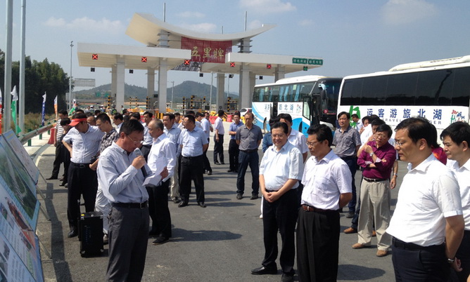 10月10日,咸寧市委書記任振鶴、市長丁小強率咸寧市第三季度經(jīng)濟工作拉練檢查團到通界高速公路檢查,咸寧市四大班子領(lǐng)導(dǎo),咸寧經(jīng)濟開發(fā)區(qū)、各縣市區(qū)黨政負責(zé)人和市直相關(guān)部門主要負責(zé)人參加。