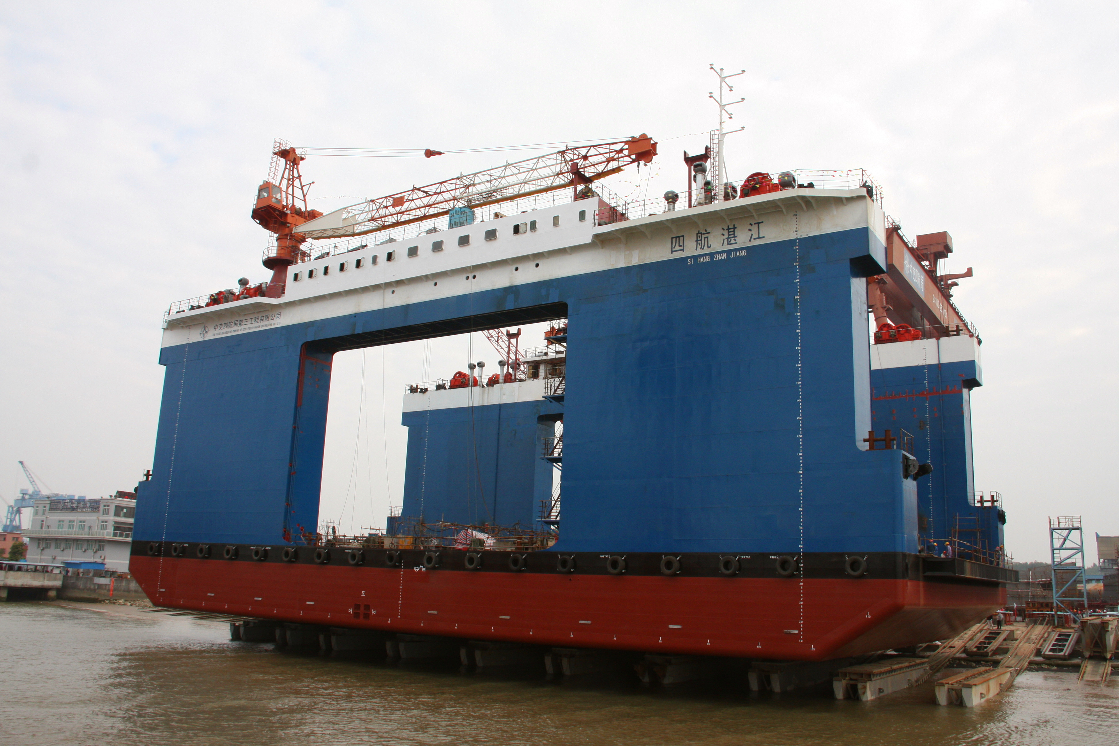 12月12日,四航局航通船業(yè)建造的一艘4500噸半潛駁船順利下水。