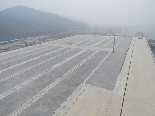 該工程建設內(nèi)容包括泊位區(qū)疏浚、1個10萬噸級集裝箱泊位(結(jié)構(gòu)按15萬噸集裝箱船靠泊預留)、道路堆場及公用設施3個單位工程。其中,碼頭岸線長480.48米,結(jié)構(gòu)形式為高樁梁板式結(jié)構(gòu),重箱堆場采用水泥穩(wěn)定碎石聯(lián)鎖塊鋪面結(jié)構(gòu),堆場總面積10.95 萬平方米。