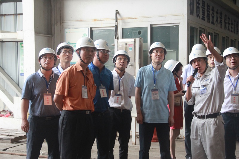 在港珠澳大橋島隧項(xiàng)目桂山沉管預(yù)制廠,賀曉春一行實(shí)地察看了沉管預(yù)制生產(chǎn)流水線,了解了各項(xiàng)工藝流程和現(xiàn)場(chǎng)標(biāo)準(zhǔn)化管理、安全質(zhì)量管理情況,聽取了關(guān)于關(guān)鍵設(shè)備設(shè)計(jì)制造、技術(shù)工藝創(chuàng)新、沉管起浮橫移等情況的介紹??疾靾F(tuán)還觀看了島隧工程視頻資料,了解項(xiàng)目總體設(shè)計(jì)及施工進(jìn)展情況。