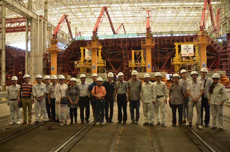 在西人工島,考察人員實(shí)地察看了人工島建設(shè)進(jìn)展情況,了解了人工島成島技術(shù),橋、島、隧轉(zhuǎn)換設(shè)計理念等;在沉管預(yù)制廠,考察人員聽取了沉管預(yù)制流程、高端生產(chǎn)設(shè)備研發(fā)、標(biāo)準(zhǔn)化管理、超大型沉管質(zhì)量管控等的介紹,并就沉管生產(chǎn)周期、成本、技術(shù)難點(diǎn)、文化建設(shè)等進(jìn)行了深入交流。