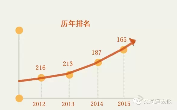7月22日,美國《財富》雜志公布了2015年世界500強排行榜,中國交建以601.19億美元的營業(yè)收入位列第165位,比去年的第187位上升了22位,在入選世界范圍內(nèi)的13家建筑類企業(yè)中,排名第5位,利潤額在國內(nèi)建筑企業(yè)中,排名第2位。中國交建穩(wěn)固了公司“十二五”規(guī)劃制定的進入世界500強前200名的戰(zhàn)略目標,續(xù)保持在世界500強的前列;在入選的106家中國企業(yè)(包括香港、臺灣)中排名第30位,在國務院國資委監(jiān)管的中央企業(yè)中排名第17位。