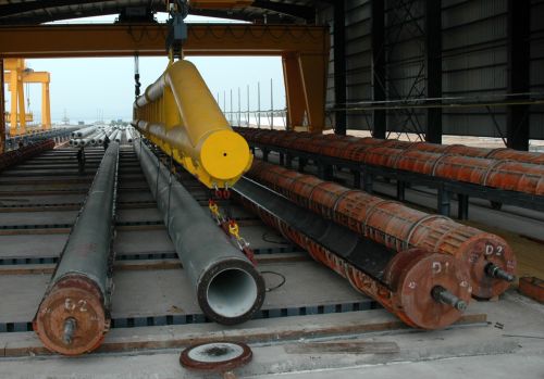目前建成的一期工程生產(chǎn)線年生產(chǎn)能力達24萬公噸。該廠總經(jīng)理倪朝日介紹,該廠生產(chǎn)的混凝土管樁單樁長度不但屬國內(nèi)首創(chuàng)、世界一流,而且由于采用了先張法和高速離心成型等先進的制樁技術和工藝,大大提高了管樁的強度、耐打性和防腐能力,其中承載力最高可達9400千牛。