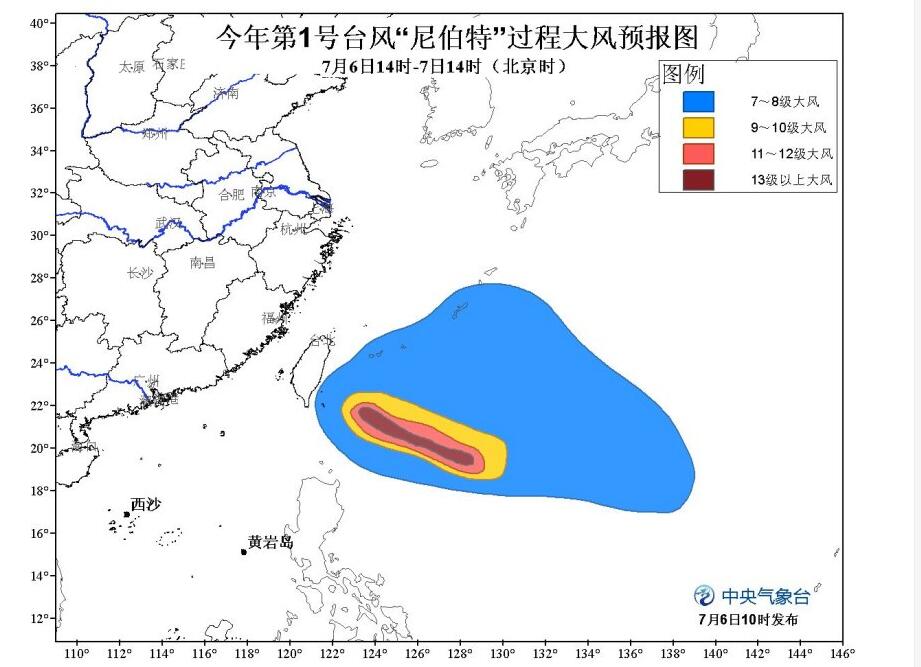 今天上午10點(diǎn),中央氣象臺發(fā)布臺風(fēng)橙色預(yù)警:今年第1號臺風(fēng)“尼伯特”(超強(qiáng)臺風(fēng)級)的中心今天上午14點(diǎn)鐘位于我國臺灣花蓮東偏南方大約870公里(北緯19.4度、東經(jīng)128.6度),中心附近最大風(fēng)力有17級以上(68米/秒),中心最低氣壓為910百帕,7級風(fēng)圈半徑280-350公里,10級風(fēng)圈半徑100-150公里,12級風(fēng)圈半徑70公里。