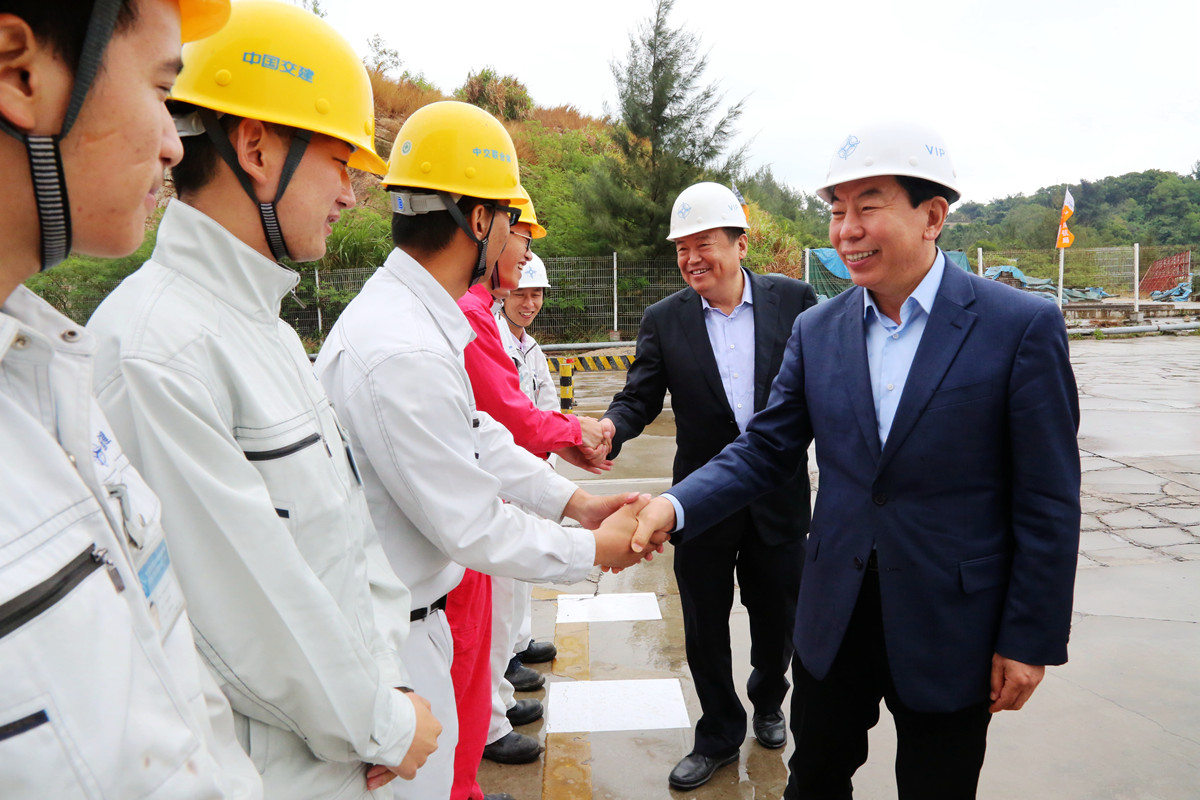 11月10日,國務(wù)院國資委副主任、黨委副書記張喜武一行到港珠澳大橋島隧工程項(xiàng)目調(diào)研。中國交建董事長、黨委書記劉起濤陪同調(diào)研,并介紹了中國交建依靠全產(chǎn)業(yè)鏈優(yōu)勢建設(shè)港珠澳大橋、服務(wù)“一帶一路”戰(zhàn)略的情況。