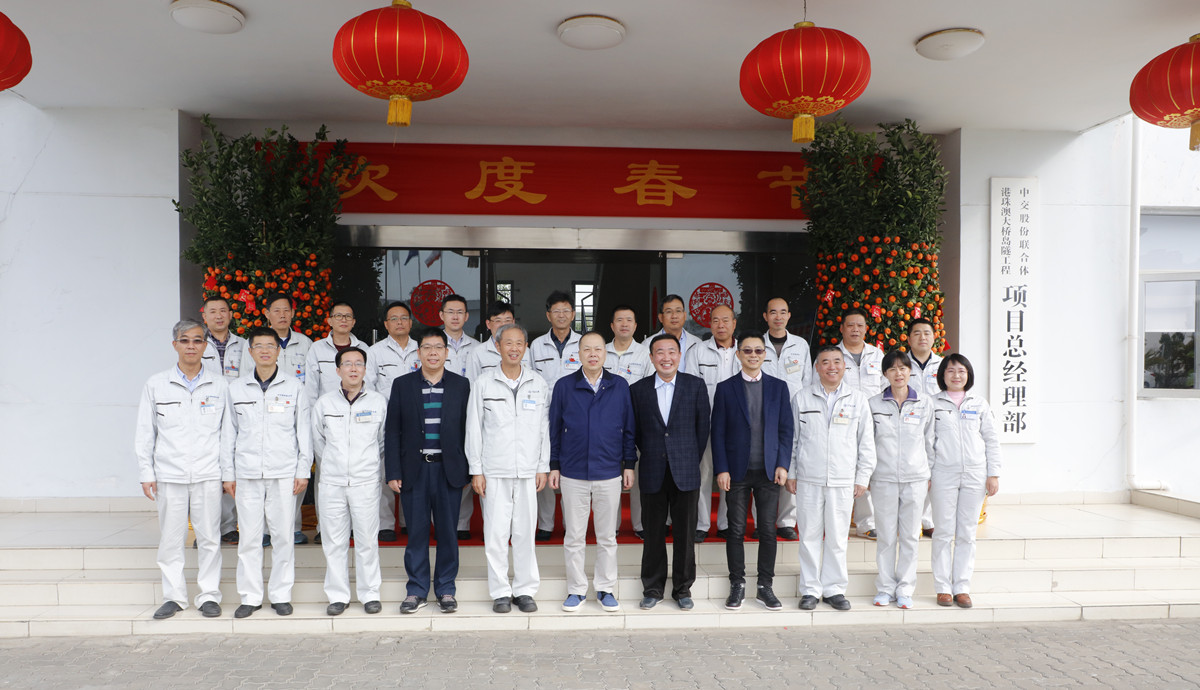 1月28日大年初一,中國交建總裁陳奮健到港珠澳大橋島隧項(xiàng)目總部及四航局一公司籌建的港珠澳大橋澳門口岸項(xiàng)目慰問堅(jiān)守工作崗位的一線施工人員,四航局董事長梁卓仁等陪同慰問。
