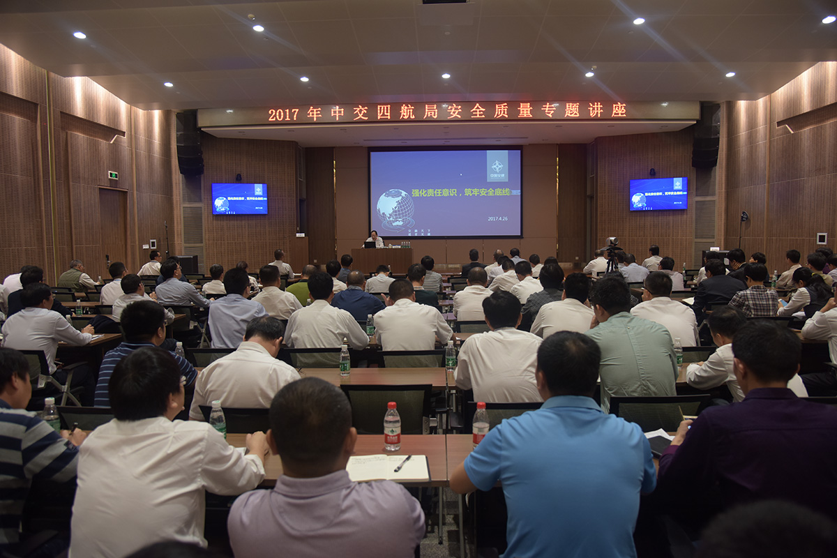 4月26日,四航局在廣州之窗舉辦安全、質(zhì)量專題講座。講座由四航局總經(jīng)理李惠明和總工程師呂衛(wèi)清主講,四航局在家領導羅寬榮、張猛、戴利云、梁赟、萬軍杰,以及來自四航局各部門、各單位的員工共300余人參加講座。