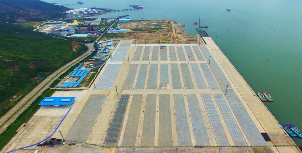 該工程2號(hào)泊位為5萬噸級(jí)集裝箱碼頭工程,結(jié)構(gòu)分為3個(gè)分段,岸線長205.92米,寬42.2米;3號(hào)泊位為5萬噸級(jí)集裝箱碼頭工程,結(jié)構(gòu)共分為5個(gè)分段,岸線長343.2米,寬42.2米;道路堆場及公用設(shè)施工程(第一階段)包括后方相對(duì)應(yīng)的H區(qū)、I區(qū)、J區(qū)的配套設(shè)施,道路堆場總面積25.37萬平方米。