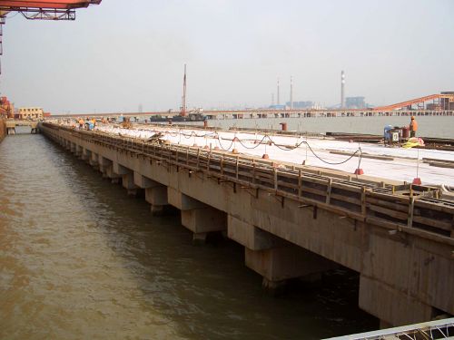 羅涇二期工程D標(biāo)工程項(xiàng)目是三公司在上海承建的第二個(gè)工程項(xiàng)目,包括290.1米煤炭卸船碼頭、240米煤炭直取碼頭、105米煤炭裝船碼頭、860米引橋等。該項(xiàng)目部針對(duì)點(diǎn)多面廣,施工干擾大、施工戰(zhàn)線長(zhǎng)、設(shè)計(jì)變更頻繁以及施工中的難點(diǎn),加大管理力度,不斷優(yōu)化施工工藝,解決了一個(gè)個(gè)困難。在10多個(gè)單位同時(shí)施工的羅涇二期工程建設(shè)中率先完成了主體工程,工程質(zhì)量、安全、進(jìn)度及文明施工得到上海市質(zhì)量安全監(jiān)督站、業(yè)主、監(jiān)理的好評(píng)。