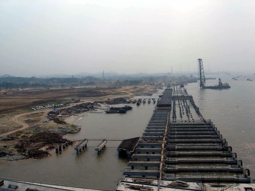 鎮(zhèn)江大港三期工程項(xiàng)目需施打大管樁900根。為了趕在長江汛期前完成沉樁施工,該項(xiàng)目部克服了船機(jī)資源缺乏、制樁和供樁供不應(yīng)求等困難,協(xié)調(diào)好各方關(guān)系,搶抓有利天氣,見縫插針施工,想方設(shè)法提高船舶的完好率和利用率,于上月15日完成沉樁施工,得到了業(yè)主、監(jiān)理的一致好評。為確保工程安全渡汛,目前,該項(xiàng)目部加大管理力度,將碼頭前臺已被江水淹沒的管樁進(jìn)行夾樁加固,加快碼頭后臺管樁橫梁澆筑的進(jìn)度,并進(jìn)行梁板安裝,確保碼頭梁板、引橋、堆場道路等施工生產(chǎn)按計(jì)劃完成。