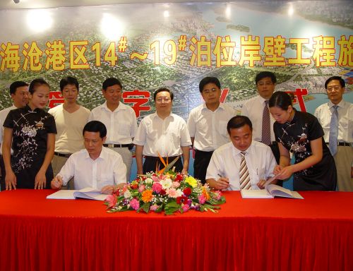 7月7日,廈門港海滄港區(qū)14-19#泊位岸壁工程合同簽字儀式舉行,局長、黨委書記梁卓仁代表我局在18、19#泊位的合同書上簽字。中共廈門市委常委、海滄投資區(qū)書記鐘興國,我局副局長黃煥謙,福州分公司總經(jīng)理利勇剛等出席了簽字儀式。