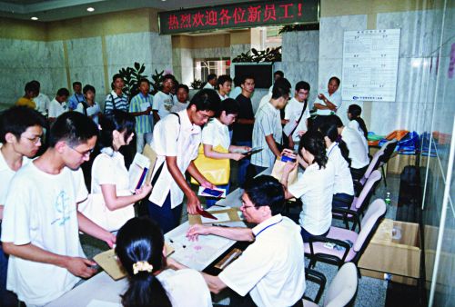 福州分公司今年共招錄大中專畢業(yè)生52名,為做好本次接收工作,人力資源部制定了詳細(xì)的接收方案,各基層單位也為新員工的到來做了充分的準(zhǔn)備,接收工作井然有序。報(bào)到當(dāng)日,新員工不僅領(lǐng)到了來分公司的第一個(gè)月工資,還報(bào)銷了報(bào)到路費(fèi),充分感受到以人為本的經(jīng)營理念,并在當(dāng)晚同聲學(xué)唱局歌。