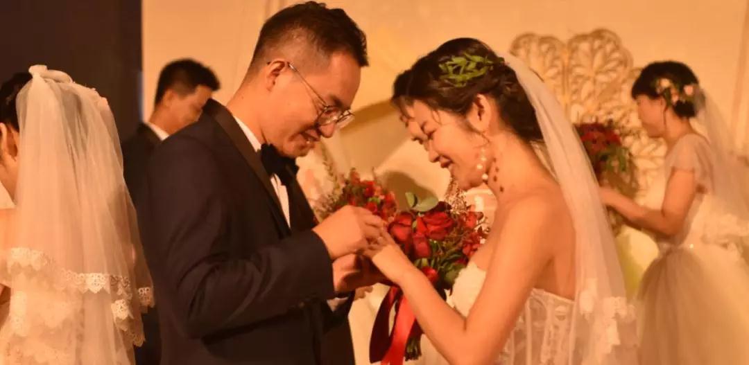 集體婚禮期間,梁卓仁、李惠明、陳輝、彭放、曾瑞雄和費(fèi)永忠一同給新人們送上結(jié)婚禮物——對戒,祝福他們情比金堅(jiān)、矢志不移。