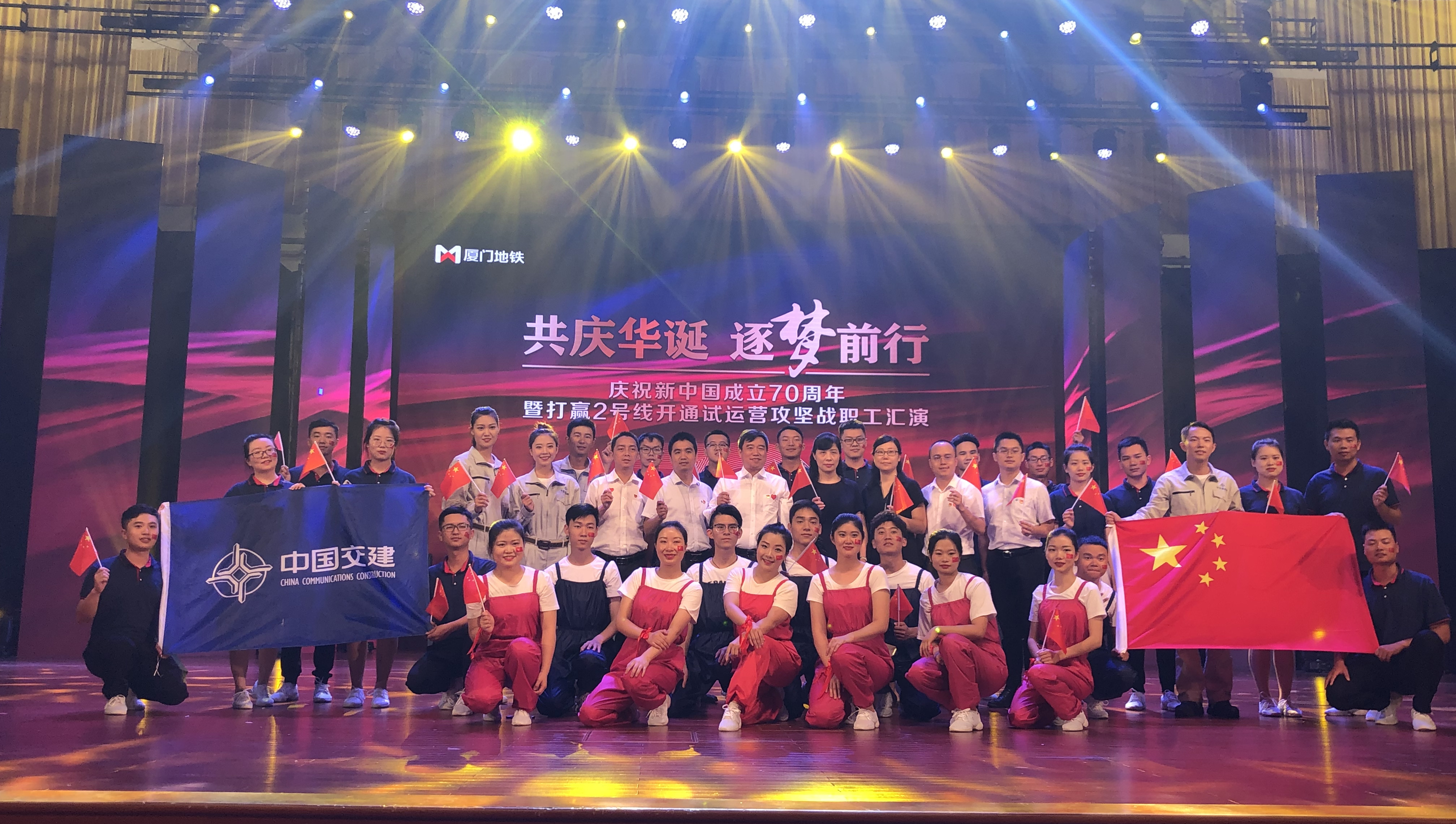 本臺節(jié)目是廈門市軌道交通集團(tuán)“共慶華誕 逐夢前行——慶祝中華人民共和國成立70周年暨打贏2號線開通試運(yùn)營攻堅(jiān)戰(zhàn)文藝匯演”的壓軸篇章《頌祖國》的開篇節(jié)目。四航局應(yīng)廈門市軌道交通集團(tuán)邀請,代表中交集團(tuán)廈門地鐵建設(shè)者參加演出。廈門地鐵數(shù)十家參建單位僅有中交等兩家單位的節(jié)目入選。