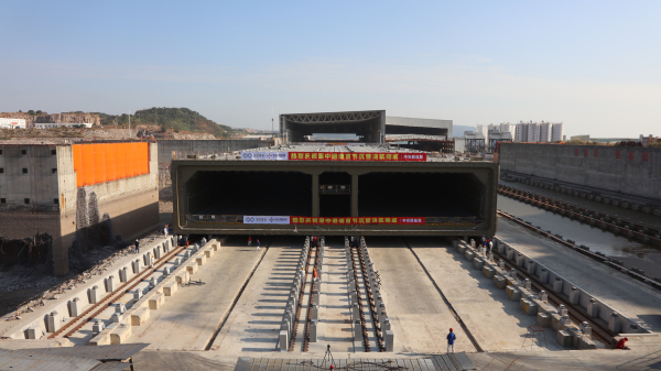 深中通道首個(gè)鋼殼沉管完成移運(yùn)典型施工