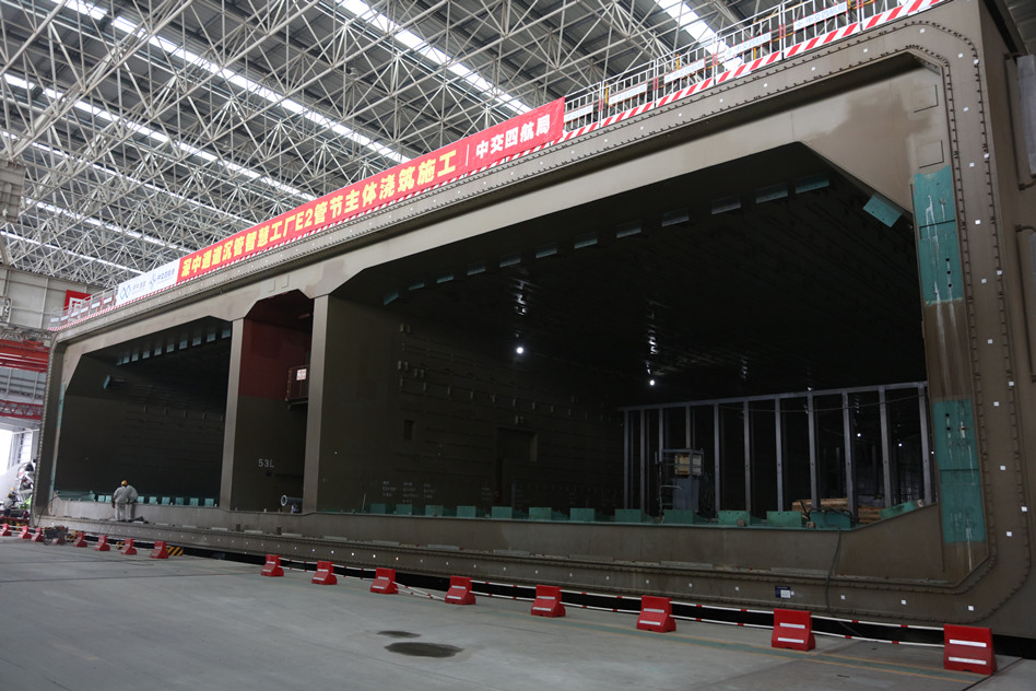 E2鋼殼沉管為深中通道首節(jié)標(biāo)準(zhǔn)鋼殼沉管,長165米,斷面尺寸寬46米、高10.6米,鋼殼重約1.2萬噸,澆筑完成重約8萬噸,共2255個倉格,澆筑方量29310立方米。