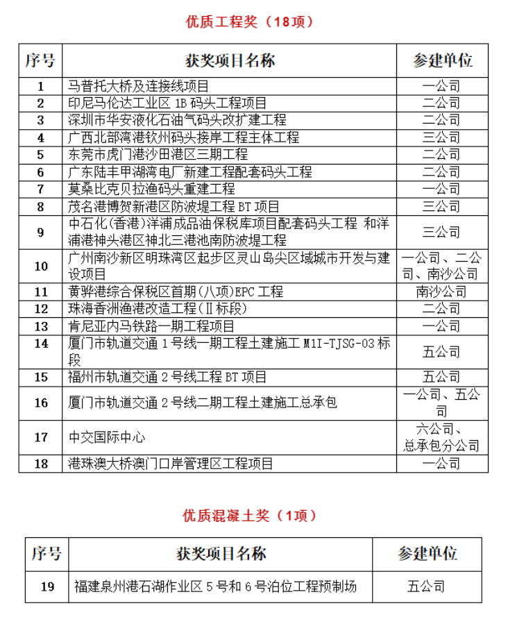 近日,中交集團公布了2020年中國交建質(zhì)量獎評選結(jié)果,四航局榮獲中國交建優(yōu)質(zhì)工程獎18項、優(yōu)質(zhì)混凝土獎1項,獲獎數(shù)量創(chuàng)歷年最高。