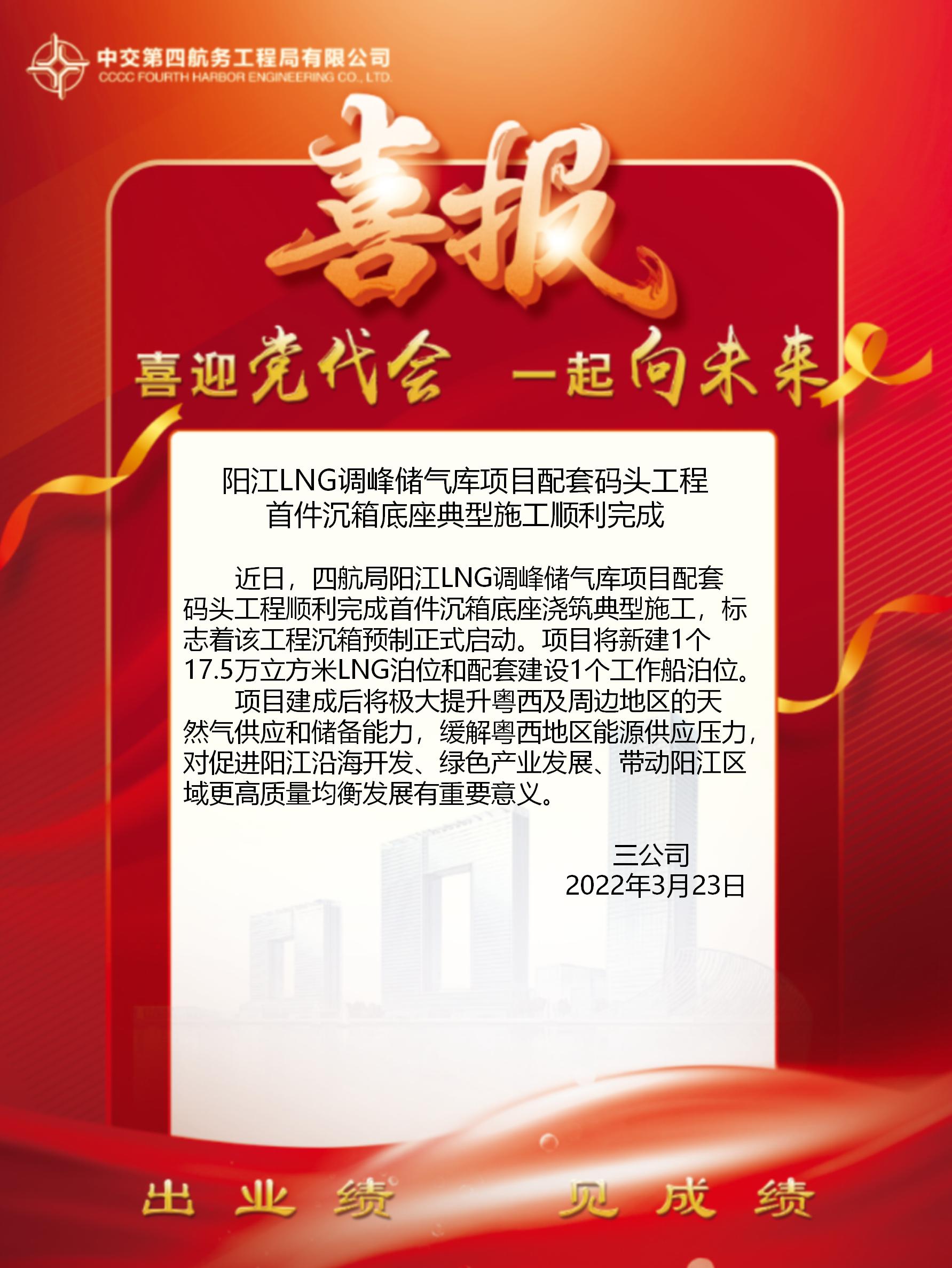 陽江LNG調(diào)峰儲氣庫項目配套碼頭工程 首件沉箱底座典型施工順利完成