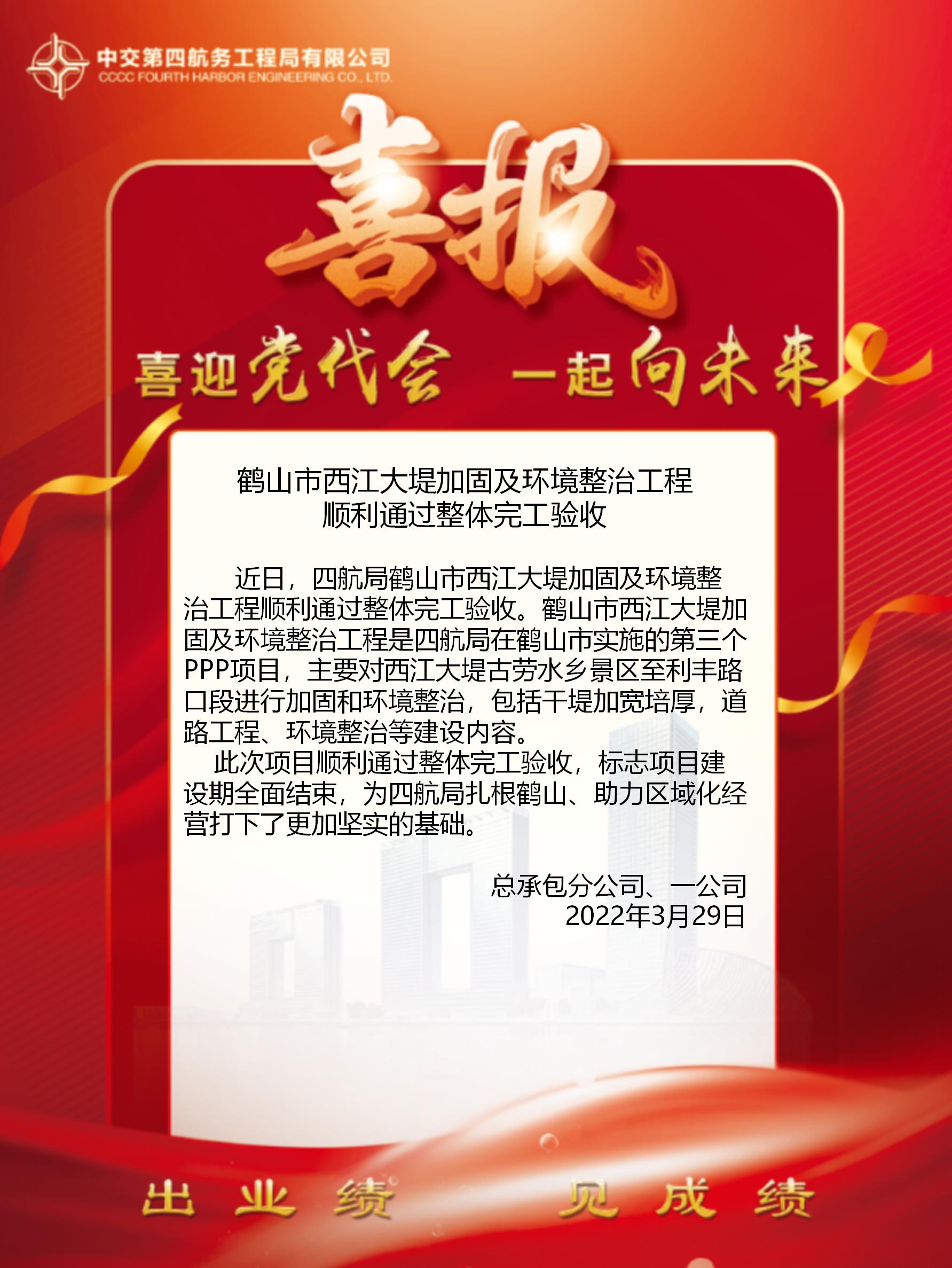 鶴山市西江大堤加固及環(huán)境整治工程順利通過(guò)整體完工驗(yàn)收