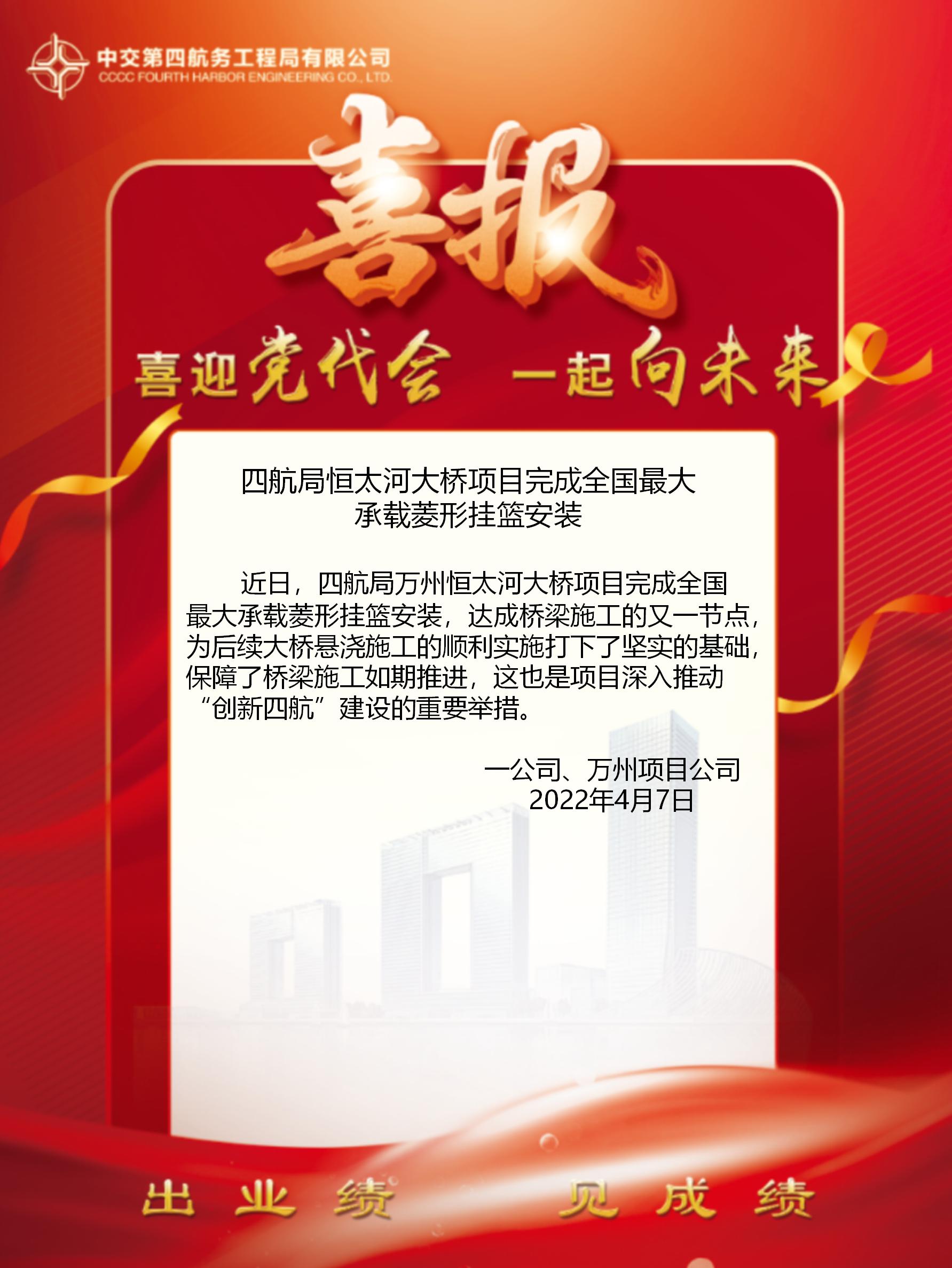 四航局恒太河大橋項目完成全國最大承載菱形掛籃安裝