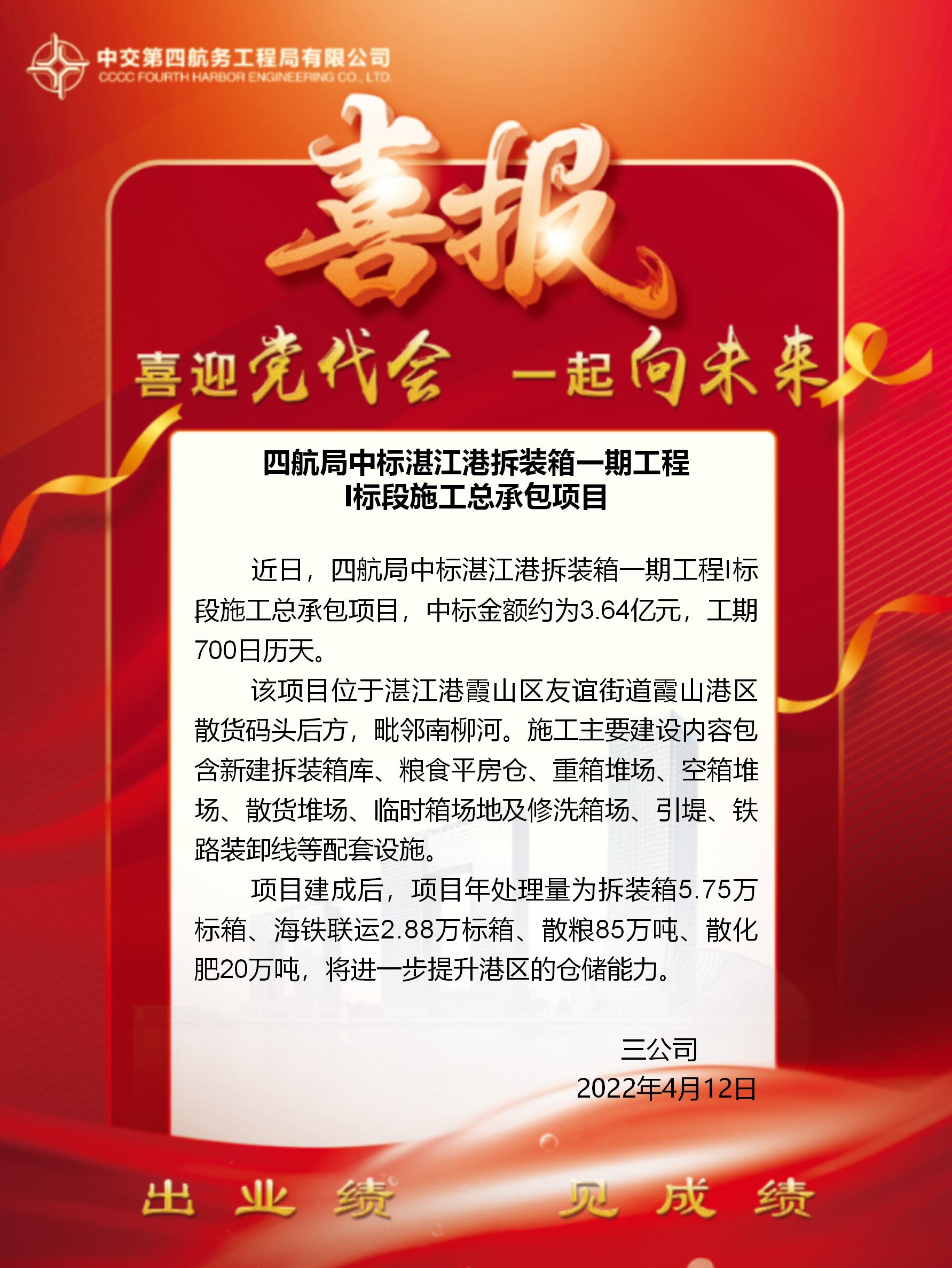 四航局中標(biāo)湛江港拆裝箱一期工程I標(biāo)段施工總承包項(xiàng)目