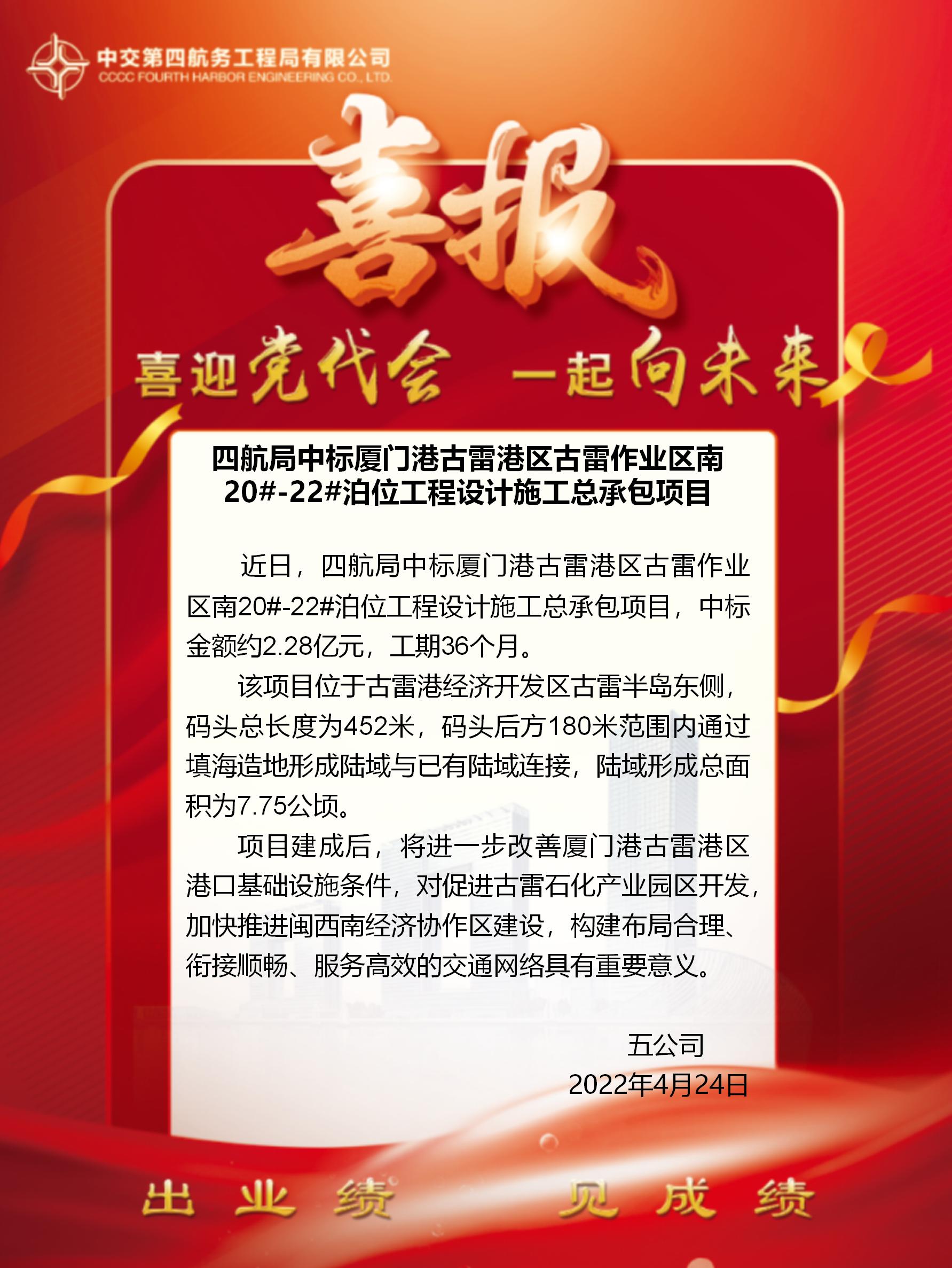 四航局中標(biāo)廈門港古雷港區(qū)古雷作業(yè)區(qū)南20#-22#泊位工程設(shè)計(jì)施工總承包項(xiàng)目