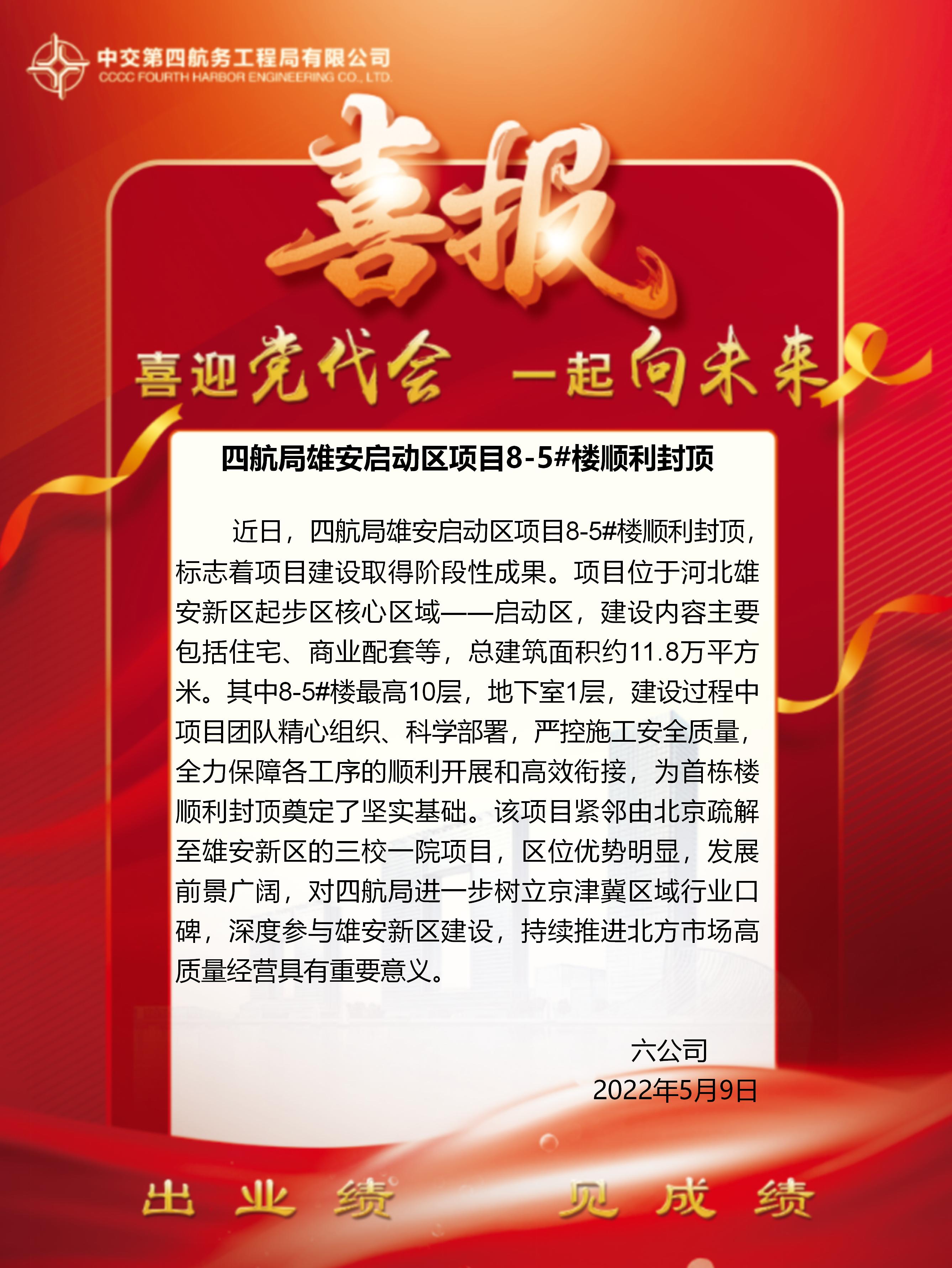四航局雄安啟動(dòng)區(qū)項(xiàng)目8-5#樓順利封頂