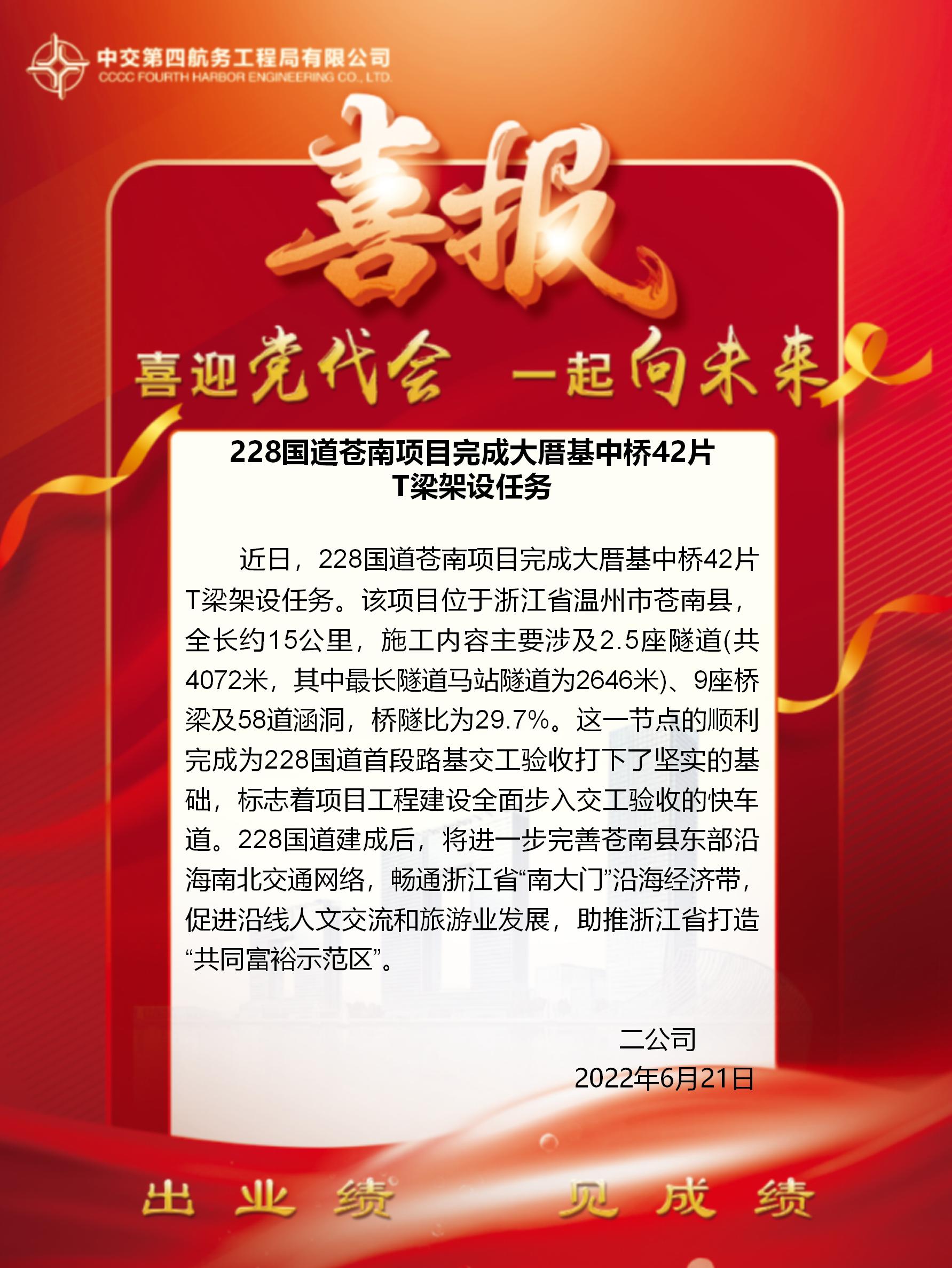 228國道蒼南項目完成大厝基中橋42片T梁架設(shè)任務(wù)