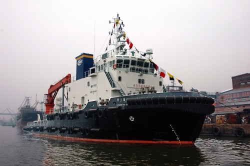 公司投資建造、目前中交集團(tuán)功率最大"粵工拖68"建成交船