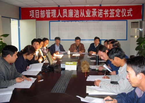 為了加強廉潔建設(shè),規(guī)范工程建設(shè)項目甲、乙雙方的各項活動,保護甲、乙雙方的合法權(quán)益,最近,三公司鎮(zhèn)江項目部分別與分包單位、全體管理人員簽定了《工程建設(shè)項目廉潔從業(yè)責(zé)任書》和《企業(yè)管理人員廉潔從業(yè)承諾書》。 (潘壽海 司徒健民)