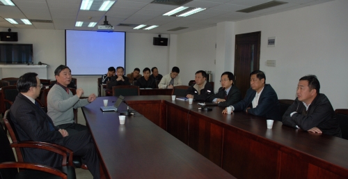 姜德生教授對光纖光柵傳感技術的原理及其目前在國內的應用領域進行了生動的講解和介紹,并結合武漢理工大學光纖傳感器國家重點工業(yè)性試驗基地所完成的工程項目情況,重點介紹了光纖光柵傳感技術在橋梁長期健康監(jiān)測、橋梁和水利等錨索長期實時安全監(jiān)測、公路隧道火災監(jiān)測、汽車稱重、高速鐵路、邊坡防治、大壩安全監(jiān)測、重型設備安全監(jiān)測等方面的應用經驗及效果。聽完姜教授的介紹,黨委副書記阮祥發(fā)等與會人員對該技術產生濃厚的興趣,紛紛提問,并進一步探討了與我公司工程實際相結合的應用前景。