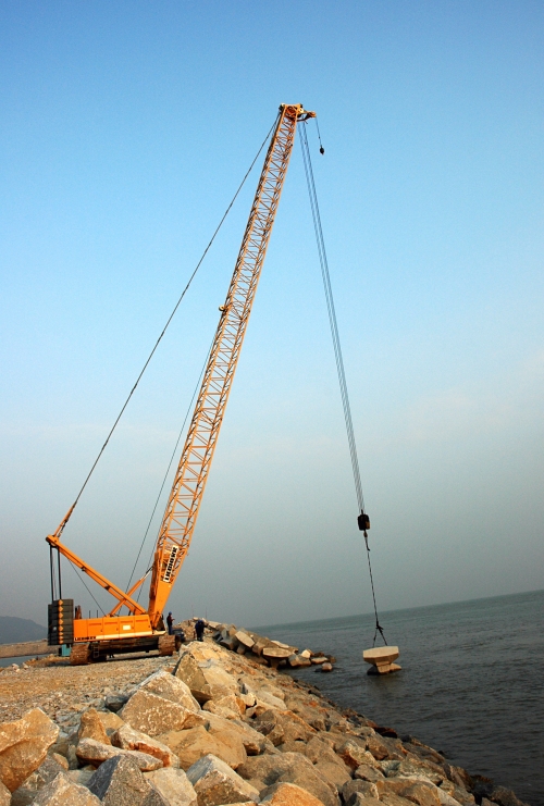 陽江核電站南防波堤搶黃金季節(jié)加快進度