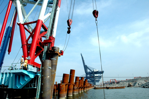 鹽田三期擴建工程自2005年3月24日開始沉樁,兩年多來,項目部施工人員齊心協(xié)力,同心同德,克服了地質條件復雜,強風化巖層厚,施工干擾大,港口作業(yè)船舶進出繁忙,樁錘老化及替打故障,沉樁工作難以連續(xù)作業(yè)等一系列困難,按時按質按量完成了全部沉樁任務,為下步施工奠定了基礎。