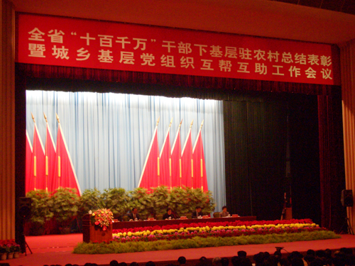 1月7日,"全省組織‘十百千萬’干部下基層駐農(nóng)村總結(jié)表彰暨城鄉(xiāng)基層黨組織互幫互助工作會(huì)議"在省委禮堂隆重召開。廣東省委常委、組織部長(zhǎng)胡澤君在會(huì)上強(qiáng)調(diào),要扎扎實(shí)實(shí)地抓好2008年"十百千萬"干部下基層駐農(nóng)村工作,全面開展城鄉(xiāng)基層黨組織互幫互助活動(dòng),努力構(gòu)建城鄉(xiāng)統(tǒng)籌的基層黨建工作新格局。副省長(zhǎng)李容根主持會(huì)議,省人大常委會(huì)副主任陳堅(jiān),省政協(xié)副主席韓大建出席了會(huì)議。
