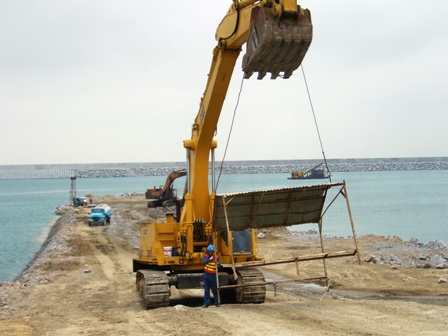 陽(yáng)江核電項(xiàng)目部歷來(lái)重視三防工作,積累了有效的防臺(tái)經(jīng)驗(yàn),每年都及早編制出三防預(yù)案,并及時(shí)組織全體員工學(xué)習(xí)掌握三防預(yù)案。當(dāng)"浣熊" 向陽(yáng)江移動(dòng)時(shí),項(xiàng)目經(jīng)理主持召開(kāi)防臺(tái)會(huì)議,安排各項(xiàng)防臺(tái)應(yīng)急措施。隨后各水上作業(yè)施工船舶馬上拖航到臺(tái)山鎮(zhèn)海灣防臺(tái)錨地;現(xiàn)場(chǎng)高處作業(yè)、水上作業(yè)全部停止;取水口防波堤停止推填,采用500~800kg塊石壓頂和側(cè)面拋填加固;預(yù)制場(chǎng)電箱全部斷電并做好防雨措施,為兩臺(tái)攪拌站的全部水泥罐拉設(shè)防風(fēng)纜;全部機(jī)械設(shè)備進(jìn)入預(yù)定防臺(tái)位置并做好防雨措施;現(xiàn)場(chǎng)宣傳標(biāo)語(yǔ)牌能拆除的全部拆除;清點(diǎn)主要作業(yè)點(diǎn)的人員;完成生活區(qū)內(nèi)燃油、食品、飲用水等的儲(chǔ)備。