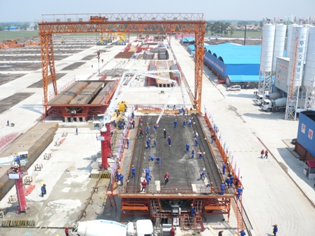 6月6日,由三公司承建的中交四航局長春制梁場首孔箱梁成功投產(chǎn)。此孔箱梁是中交四航局在哈大線上成功投產(chǎn)的首孔箱梁,同時也是中交集團(tuán)14家制梁場中第8家成功投產(chǎn)的制梁場。