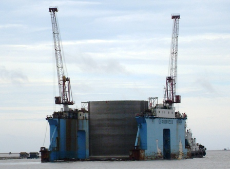 該工程共需安裝圓筒36個(gè),每個(gè)高18.1米、外徑18米、壁厚34厘米、重1600噸。該工程自去年10月15日開(kāi)工至今,各項(xiàng)工作進(jìn)展順利。截止6月15日,已完成預(yù)制圓筒15個(gè),水下開(kāi)挖140萬(wàn)方,拋石1.3萬(wàn)方,基床打夯370米,基床整平250米。