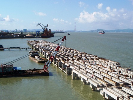 東莞立沙油品儲(chǔ)運(yùn)項(xiàng)目碼頭工程是中海油惠州1200萬(wàn)噸煉油廠的配套項(xiàng)目,建成后將為該煉廠的成品油提供儲(chǔ)運(yùn)和配送服務(wù)。該工程為連片式高樁梁板式結(jié)構(gòu)碼頭,由四航局與海油工程及東莞九豐公司以聯(lián)合體方式承接,由二公司具體負(fù)責(zé)承建的管理型工程項(xiàng)目。