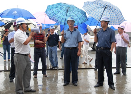 8月27日,鐵道部副部長(zhǎng)盧春房在中交股份總裁孟鳳朝、哈大公司總經(jīng)理杜厚智等相關(guān)領(lǐng)導(dǎo)的陪同下到四航局哈大工地視察指導(dǎo)。