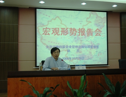在兩個(gè)半小時(shí)的報(bào)告中,趙民董事長(zhǎng)圍繞當(dāng)前全球宏觀經(jīng)濟(jì)形勢(shì)的變化,詳細(xì)論述了經(jīng)濟(jì)運(yùn)行的基本特點(diǎn),深入分析了全球經(jīng)濟(jì)環(huán)境對(duì)中國(guó)經(jīng)濟(jì)的影響,明確指出了改革開放三十周年以來我國(guó)宏觀經(jīng)濟(jì)的發(fā)展走向,通過對(duì)股市、房產(chǎn)、汽車等核心產(chǎn)業(yè)的旁征博引深入淺出地闡明了復(fù)雜的經(jīng)濟(jì)規(guī)律。報(bào)告內(nèi)涵豐富,形式生動(dòng),贏得了與會(huì)人員的熱烈掌聲。