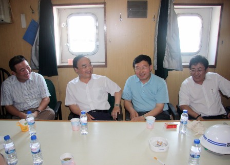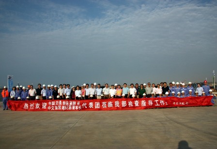 翁副部長(zhǎng),周董事長(zhǎng)一行登上"粵工拖37"號(hào)拖輪,分別視察了GRN集裝箱碼頭、Sonils主碼頭、Sonan;l油碼頭等完工工程,以及預(yù)制廠、船塢、主碼頭延長(zhǎng)段等在建工程,并在海上檢閱了該項(xiàng)目部所有施工船舶。領(lǐng)導(dǎo)們都對(duì)該項(xiàng)目部所取得的成績(jī)表示認(rèn)可,同時(shí)也對(duì)項(xiàng)目部為祖國(guó),為中交集團(tuán)做出的貢獻(xiàn)表示感謝。