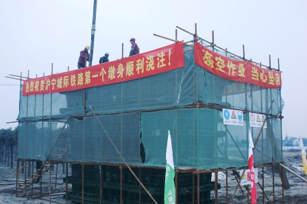 滬寧城際鐵路自7月1日開工以來,項目部克服圖紙不到位、工期緊、任務重等困難,按照中交滬寧城際項目部的統(tǒng)一安排、部署,以征地拆遷為龍頭,以開展"大干一百天,確保年度計劃完成"勞動競賽活動為契機,制定了詳細的勞動競賽具體實施方案,并將方案逐月分解,落到實處。項目部每月定期召開勞動競賽施工生產(chǎn)情況總結(jié)暨下月生產(chǎn)動員會,對當月生產(chǎn)中措施得當、取得良好成績的優(yōu)勝隊伍進行表彰,對執(zhí)行不力、影響總體施工進度的隊伍進行相應處罰,確保每月勞動競賽活動任務目標落到實處。通過開展勞動競賽活動,項目施工生產(chǎn)形成了大干快上的良好局面,目前,工程各項工作進展順利,征地拆遷累計完成95%,完成灌注樁施工1488根(累計完成率68%),完成承臺澆注18個。