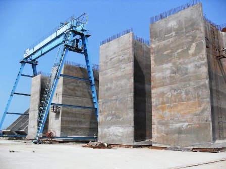 重件船塢工程共有沉箱6件,每件重達(dá)580噸,是羅安達(dá)項(xiàng)目部成立以來(lái)預(yù)制的最大構(gòu)件。沉箱預(yù)制采用外模一次到頂,內(nèi)膽分層立模、混凝土分層澆注的施工方法,澆注歷時(shí)50個(gè)小時(shí)。目前,船塢工程進(jìn)展順利,項(xiàng)目部人員正全力以赴,爭(zhēng)取明年6月底全面交工。